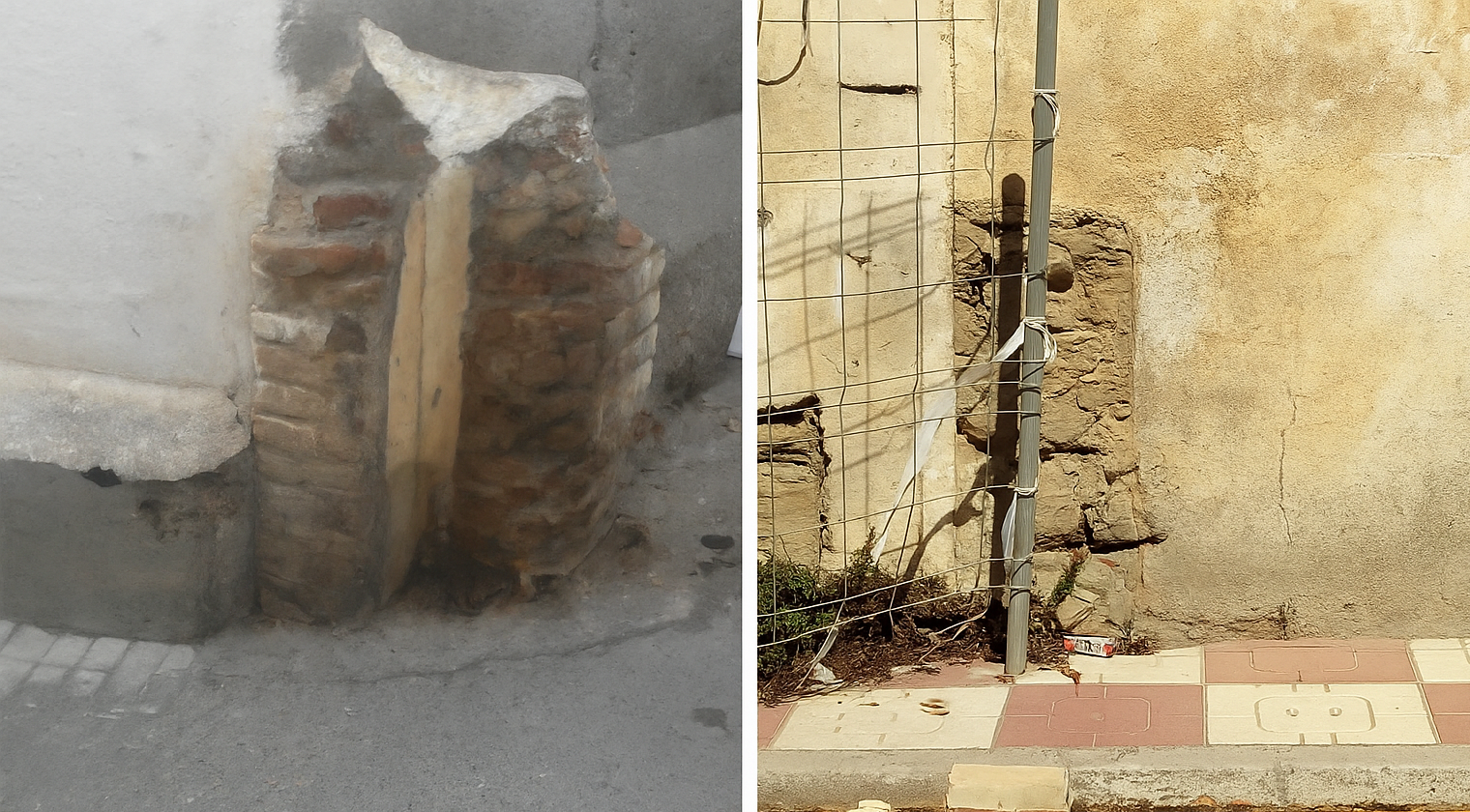 Las fotografías facilitadas por un vecino muestran perfectamente estos restos: pequeños muretes de ladrillo y piedra, desgastados por el tiempo, que aún conservan la forma necesaria para encajar los tablones protectores. Son piezas de arquitectura popular, casi invisibles hoy, pero esenciales para entender cómo se defendía el pueblo.