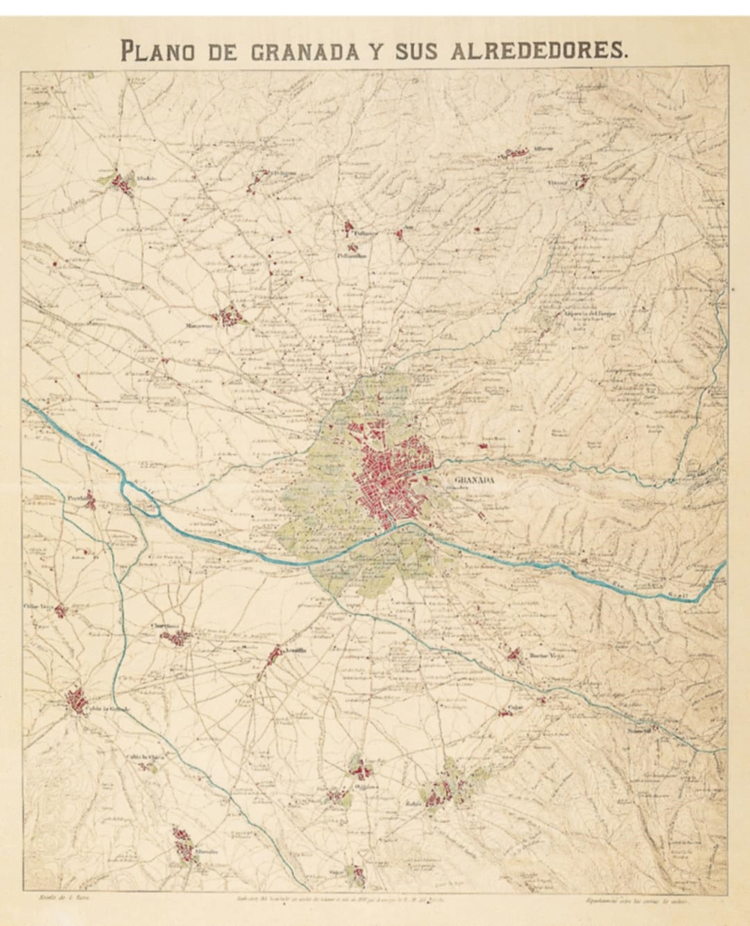 El mapa histórico que nos envían, aunque no representa todos los cursos posibles, confirma la tendencia del Dílar a ensancharse y variar su recorrido en el tramo que hoy ocupan Purchil y Belicena. No es casual que en Belicena exista una zona llamada tradicionalmente «Dílar»: es un testimonio toponímico de que el río, en algún momento de su historia, llegó a discurrir más cerca del casco urbano de lo que lo hace en la actualidad.