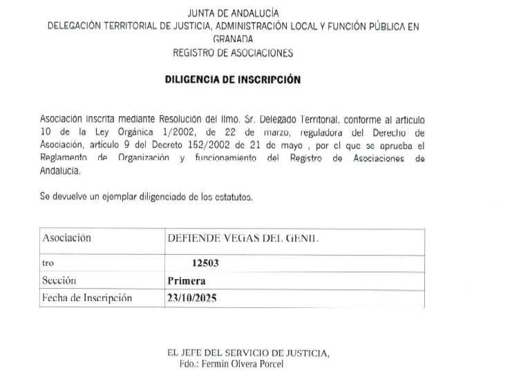 La Asociación Defiende Vegas del Genil nace con el propósito de canalizar las inquietudes vecinales, proteger lo público y construir un modelo de pueblo más justo, participativo y respetuoso con su identidad. Nuestros fines están recogidos en nuestros estatutos y expresan el compromiso real de esta plataforma con el presente y el futuro de nuestro municipio.