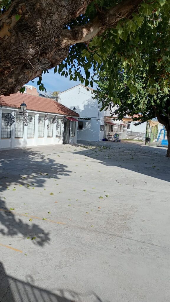Para ganar algo de espacio, el colegio tuvo incluso que sacrificar parte de sus instalaciones deportivas originales, eliminando parte de las pistas de futbito y baloncesto para levantar más módulos. El patio, ya reducido, quedó muy por debajo del tamaño ideal para el número de niños matriculados. En resumen: un colegio diseñado para otra época intentando sobrevivir a la realidad del siglo XXI.