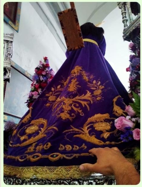 No es una pieza cualquiera. Es una auténtica joya del bordado granadino. Muy pocos Cristos podían lucir en aquella época una túnica de semejante riqueza, y menos aún en un pueblo pequeño como Purchil. Que aquí existiera una obra de ese nivel revela algo muy profundo: el enorme esfuerzo que hicieron generaciones enteras para ofrecer lo mejor a sus sagradas imágenes. No era ostentación.